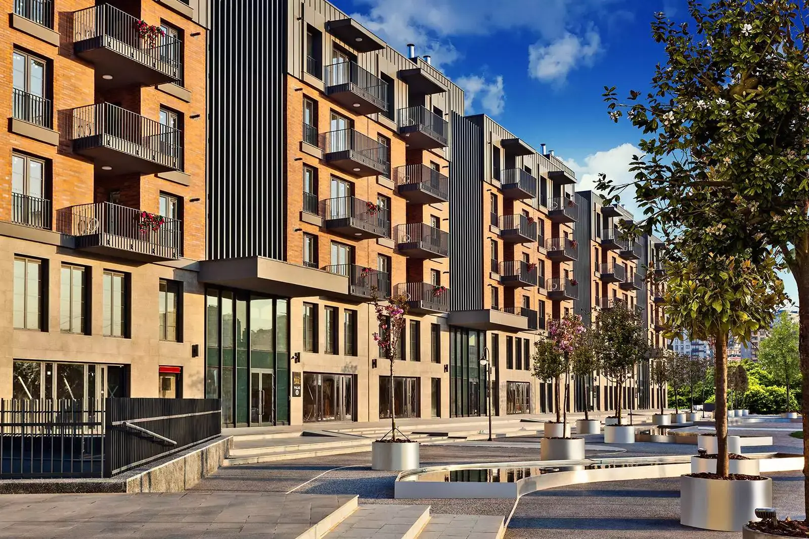 metro durağına komşu konumda olan Sinpaş Finans Şehir, gayrimenkulde bir ilk olan "örnek semt" konseptini