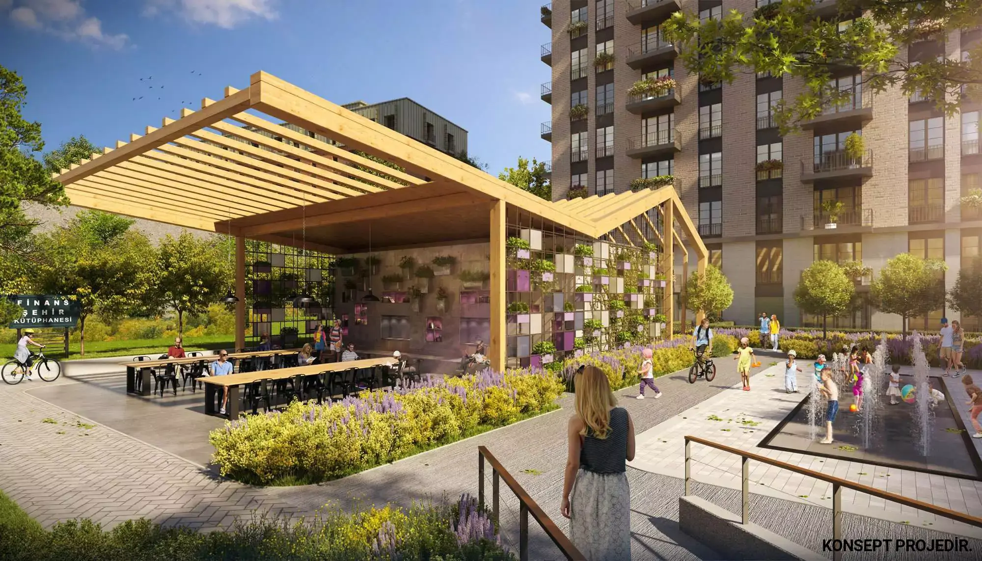 hayata geçirdi.Sinpaş Finans Şehir sadece örnek semtiyle değil; az katlı mimarisi, tuğla cepheli evleri, çocuk